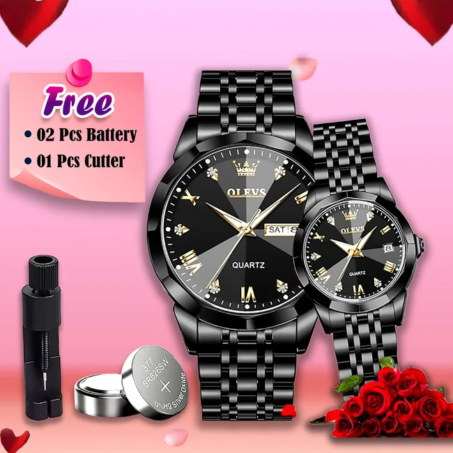 Olevs Stylish Couple Wrist Watch-Black Color